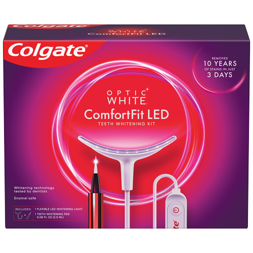 Get professional-level whitening in just 10 minutes a day for 10 days, when used as directed, at home with the Colgate® Optic White® ComfortFit LED Teeth Whitening Kit!