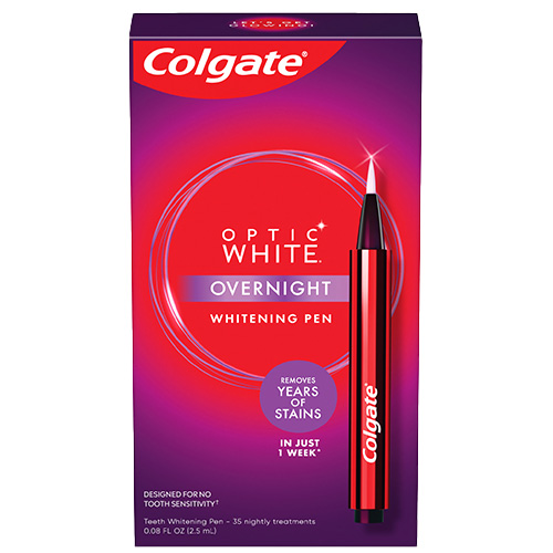 Whitening pens. These contain bleaching gel that is brushed on the teeth and left to dry. They’re very convenient and great for quick, on-the-spot whitening.